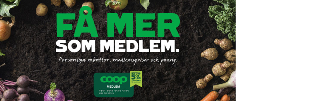 Du som är medlem och har ett Coop-kort kan tjäna ännu fler poäng genom att använda något av betal- eller kreditkorten, eller när du handlar hos Coops partners nätbutiker, via Coop.se.